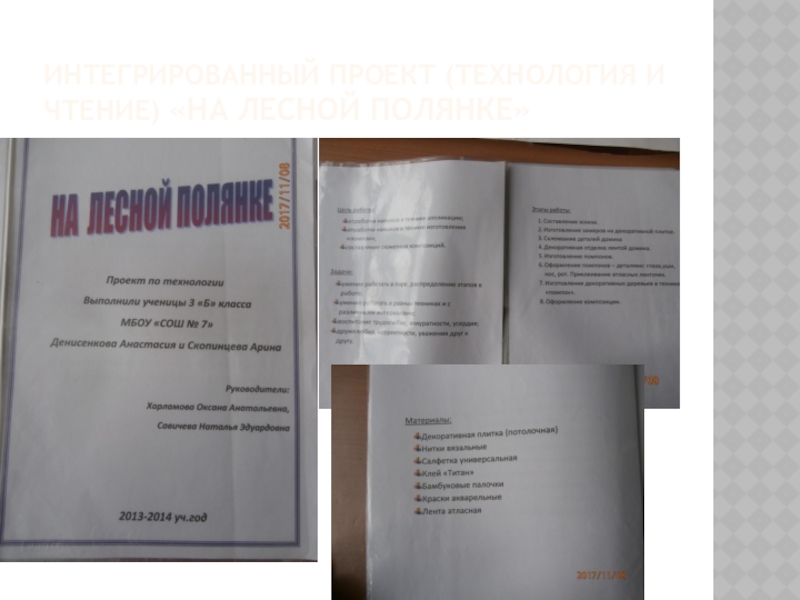 ИНТЕГРИРОВАННЫЙ ПРОЕКТ (ТЕХНОЛОГИЯ И ЧТЕНИЕ) «НА ЛЕСНОЙ ПОЛЯНКЕ»