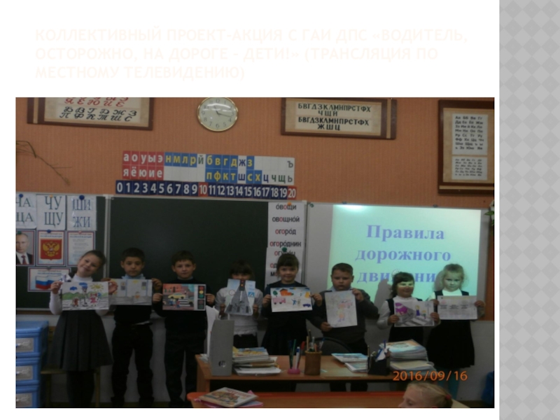 Коллективный проект-акция с ГАИ ДПС «Водитель, Осторожно, на дороге – дети!» (трансляция по местному телевидению)