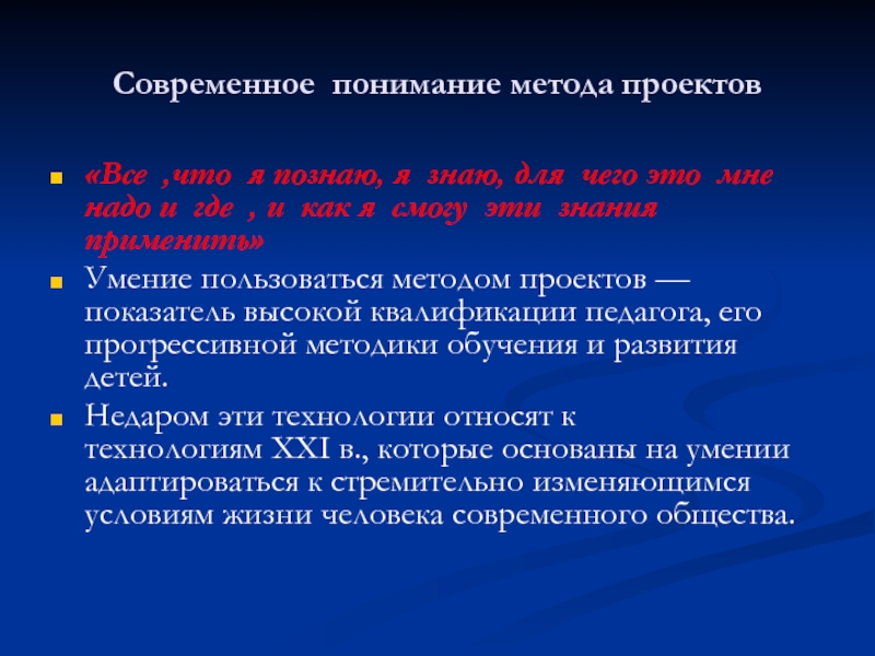 Слайд 16Современное понимание метода проектов