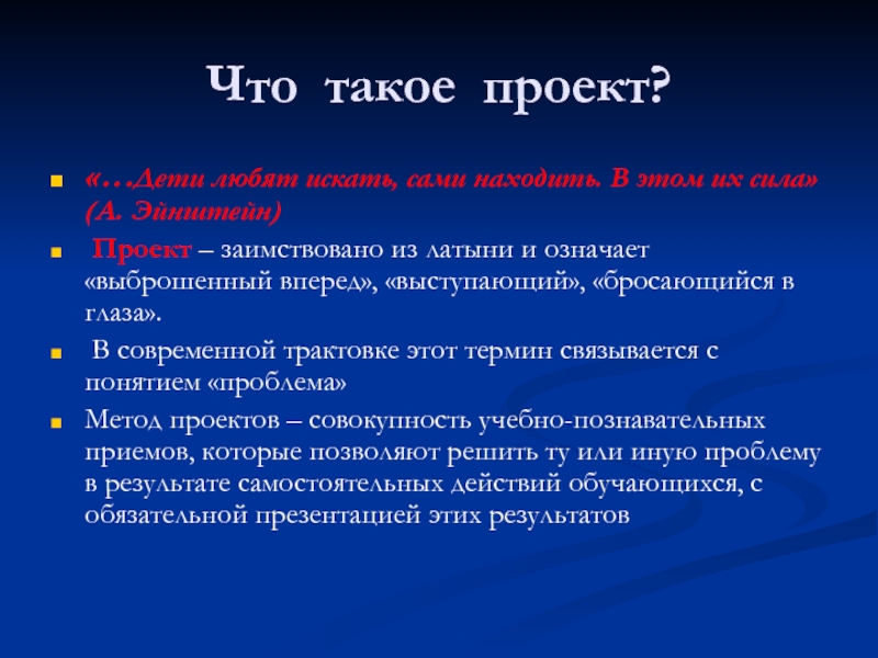 ПРОЕКТ- это метод педагогически организованного освоения