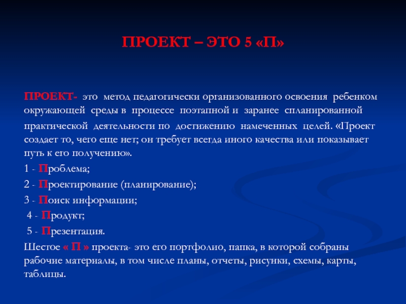 Слайд 4ПРОЕКТ – ЭТО 5 «П»