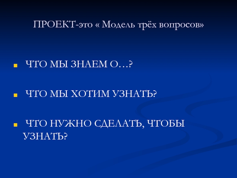 Слайд 12ПРОЕКТ-это « Модель трёх вопросов»