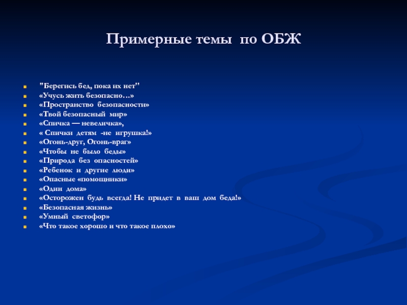 Слайд 19Примерные темы по ОБЖ