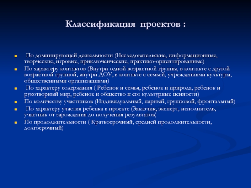 Слайд 5Классификация проектов :