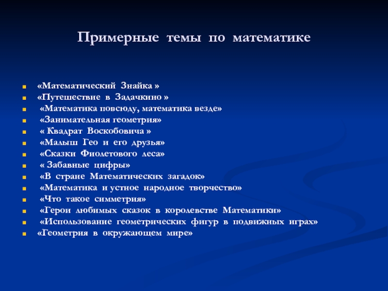 Слайд 20Примерные темы по математике