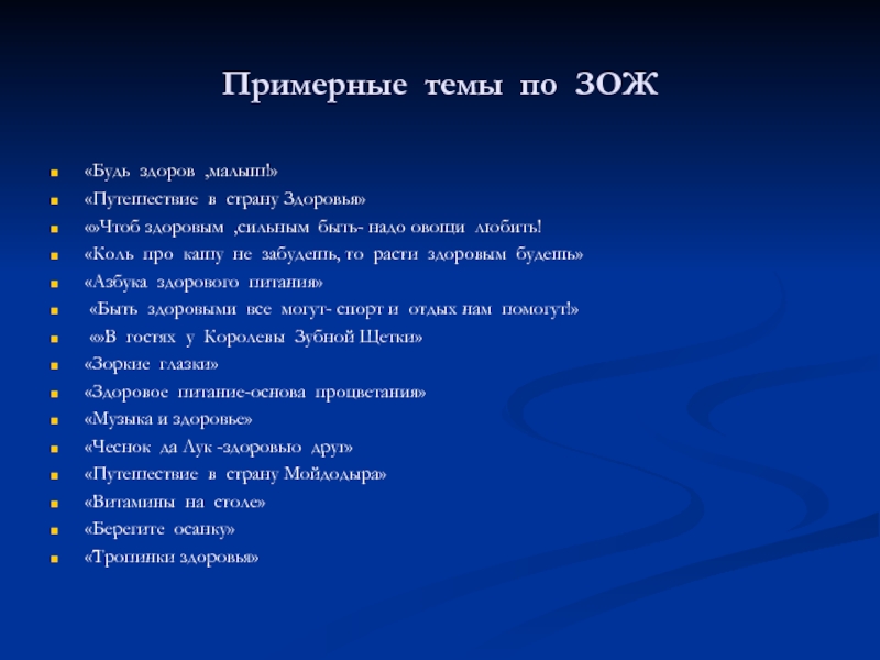 Слайд 18Примерные темы по ЗОЖ