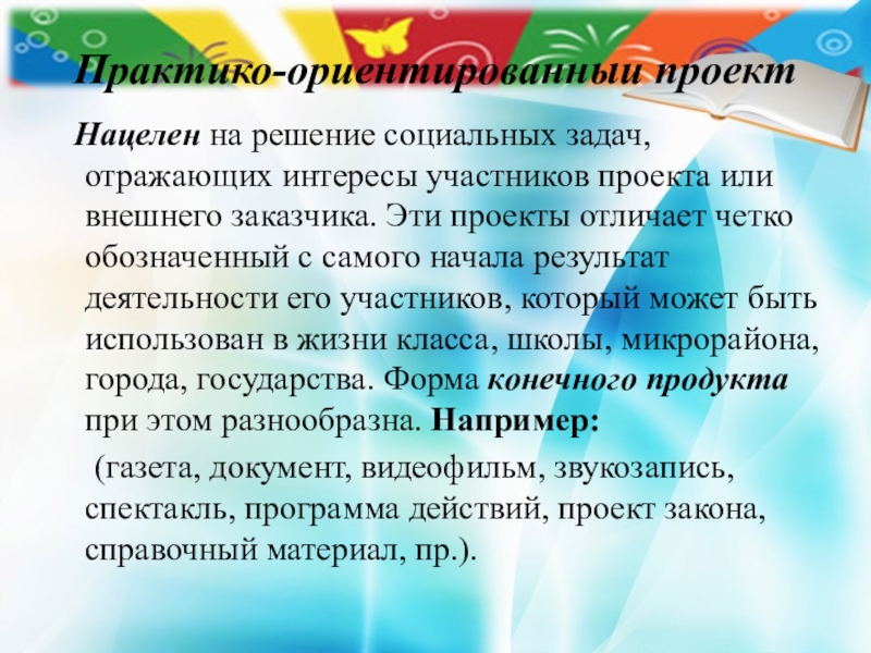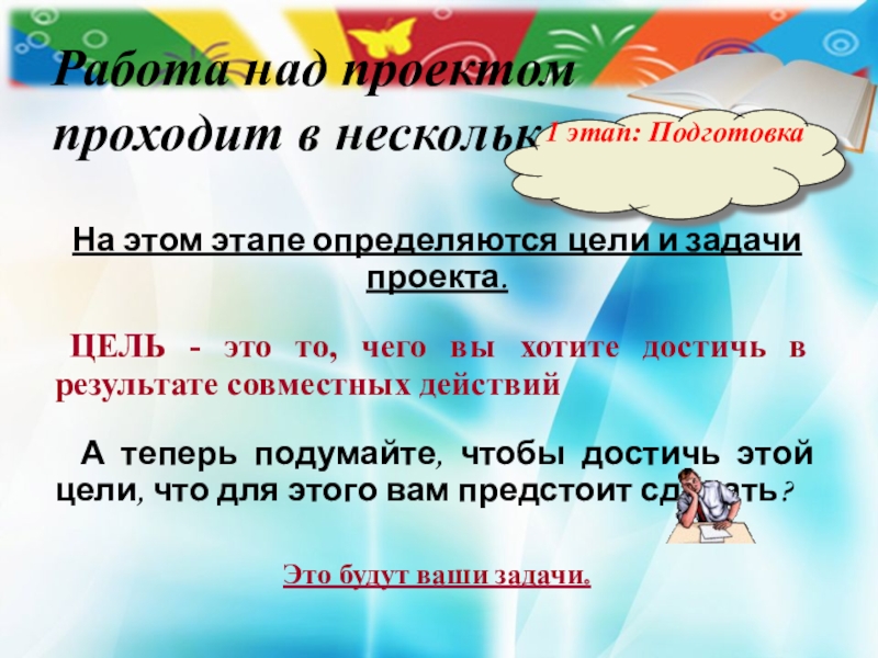 Работа над проектом на первых этапах может вестись в рамках определенного направления, а тема может быть сформулирована позже, например, после анализа литературы и других информационных источников.