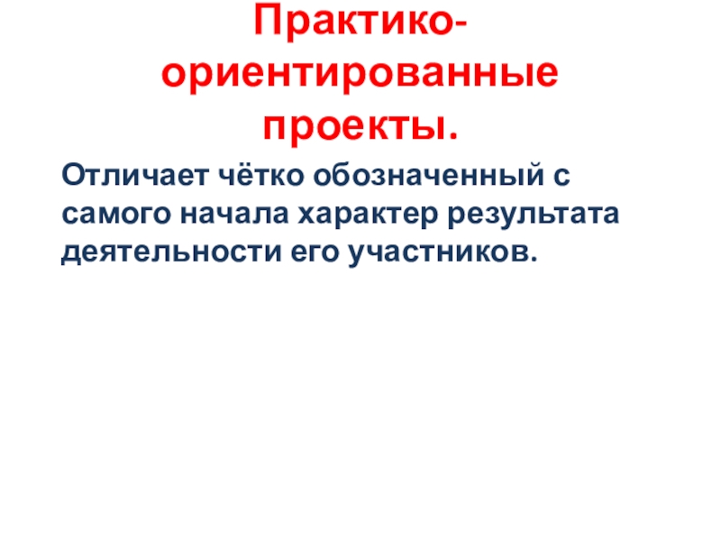 Практико-ориентированные проекты.Отличает чётко обозначенный с самого начала характер результата деятельности его участников.