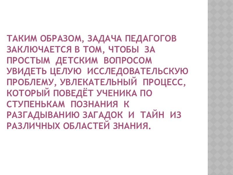 · поддержание исследовательской активности школьников на основе имеющихся представлений;