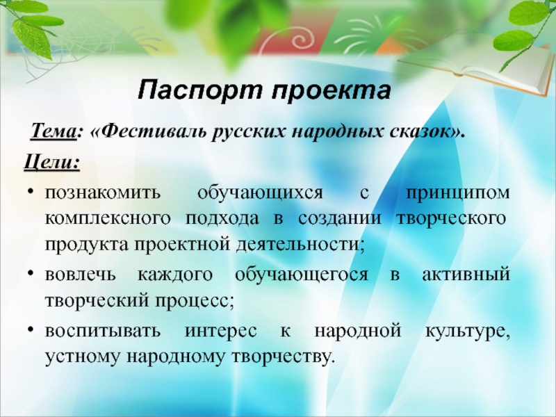 Слайд 33Паспорт проекта