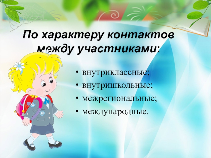 Слайд 17По характеру контактов между участниками: