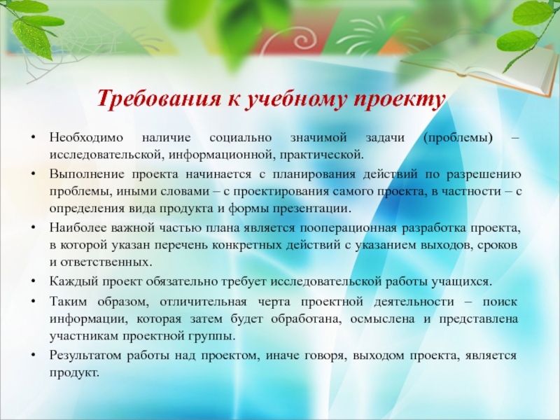 Слайд 5Требования к учебному проекту