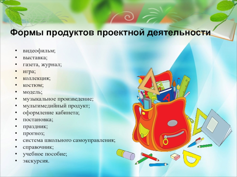 Слайд 18Формы продуктов проектной деятельности