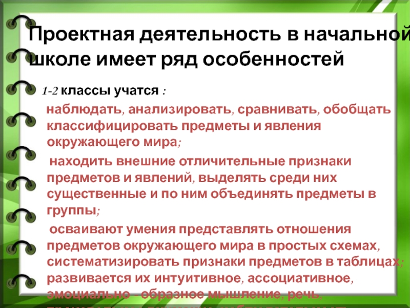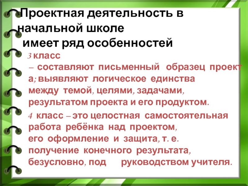 Слайд 11Проектная деятельность в начальной школе имеет ряд особенностей
