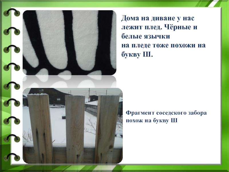 Слайд 14Дома на диване у нас лежит плед. Чёрные и белые язычки