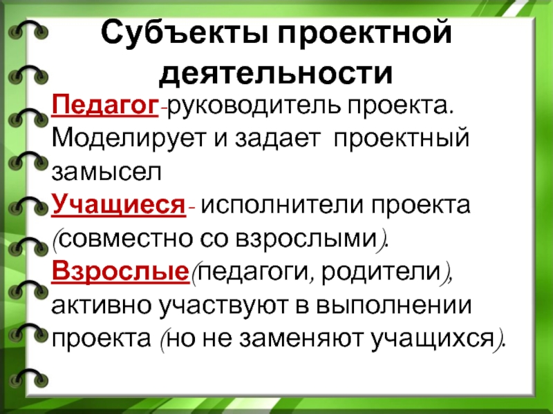 Слайд 3Субъекты проектной деятельности
