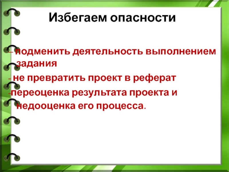 - не превратить проект в реферат