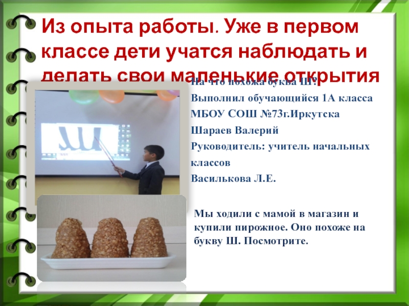 Слайд 13Из опыта работы. Уже в первом классе дети учатся наблюдать и