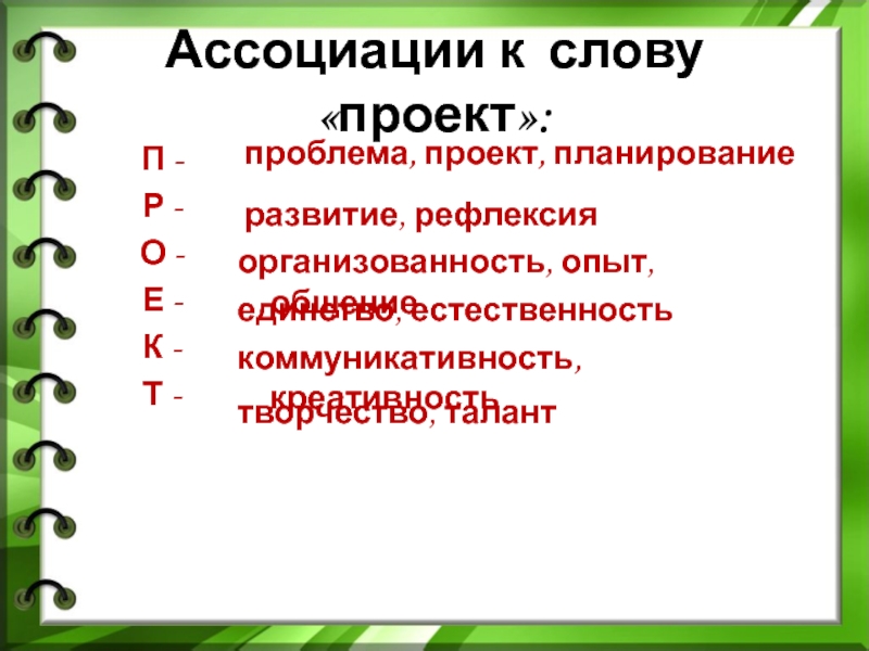 Слайд 2Ассоциации к слову «проект»:
