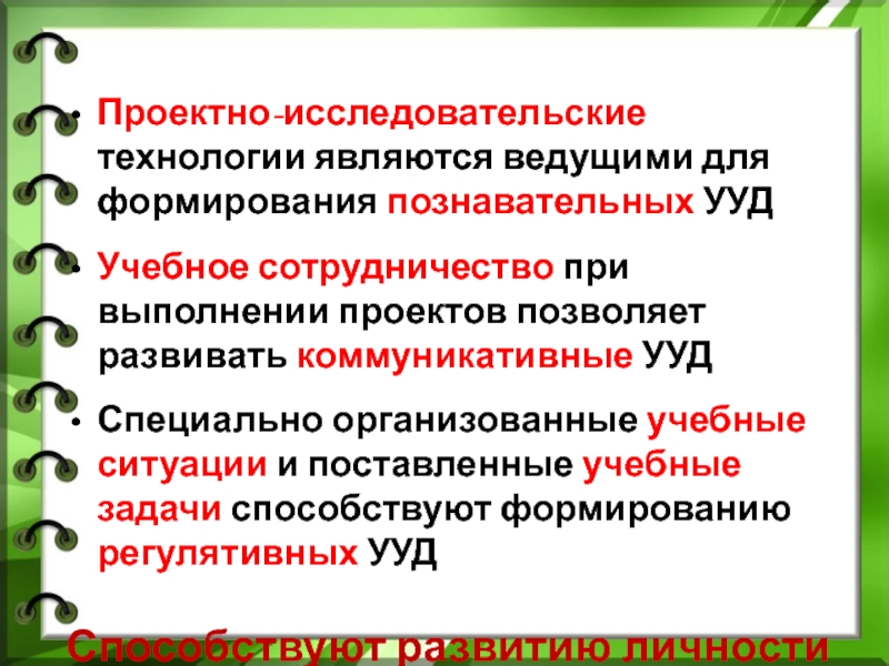 Проектно-исследовательские технологии являются ведущими для формирования познавательных УУД