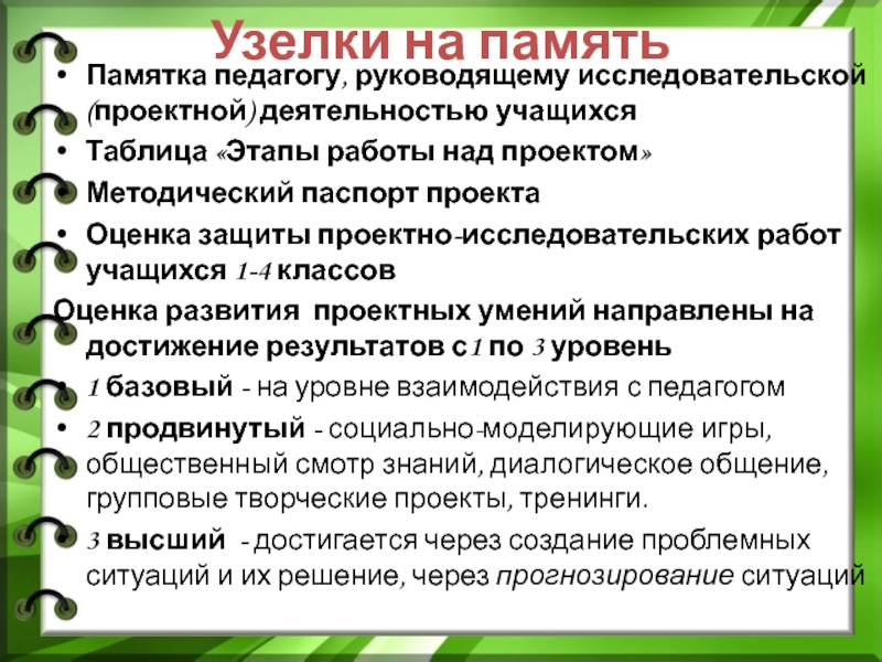 Слайд 23Узелки на память