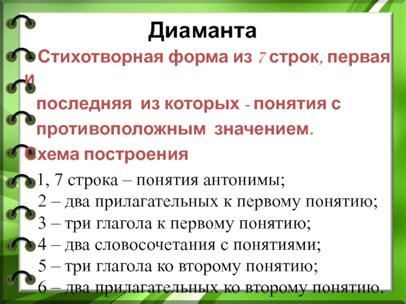 - Стихотворная форма из 7 строк, первая и