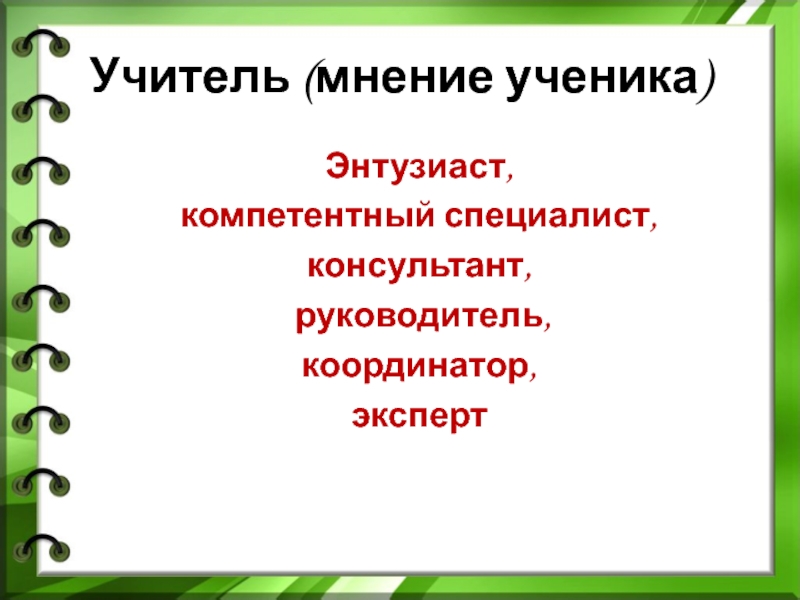 Слайд 8Учитель (мнение ученика)