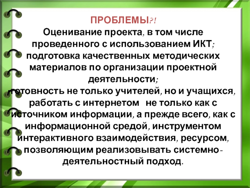 готовность не только учителей, но и учащихся, работать с интернетом не только как с источником информации, а прежде всего, как с информационной средой, инструментом интерактивного взаимодействия, ресурсом, позволяющим реализовывать системно-деятельностный подход.