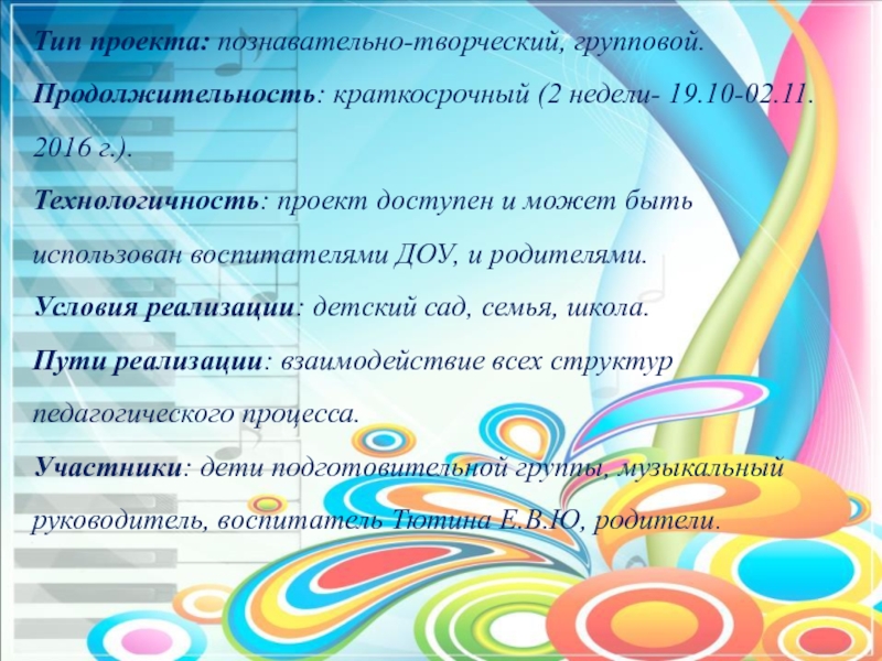 Слайд 6Тип проекта: познавательно-творческий, групповой.