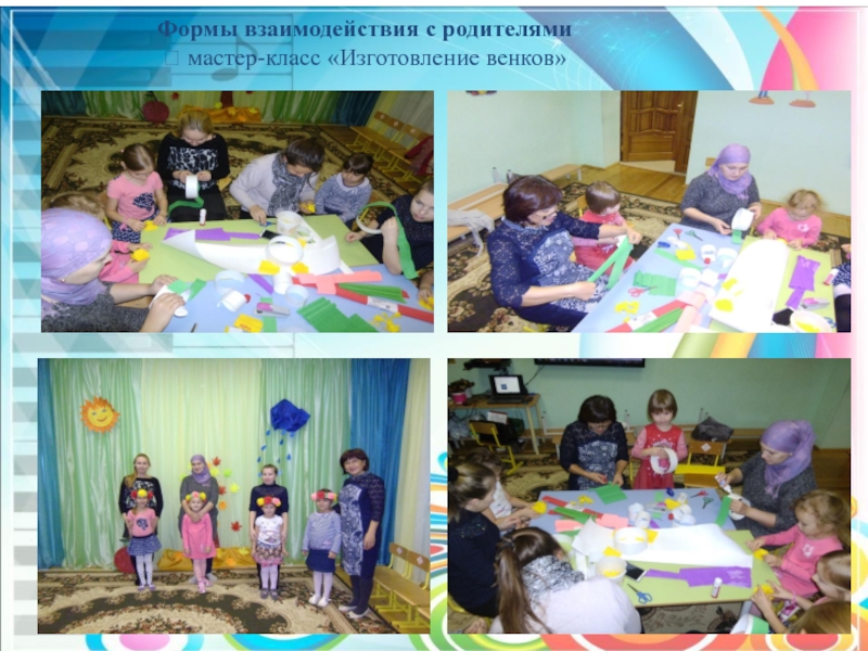 1. Привлечь семьи воспитанников к участию в совместных с педагогом мероприятиях с целью целостного развития личности каждого ребенка. (изготовление венков).