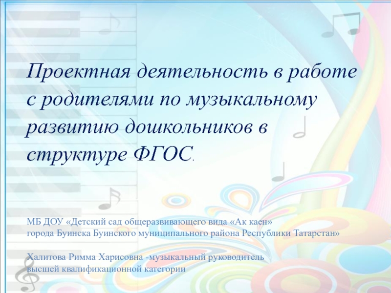 Проектная деятельность в работе с родителями по музыкальному развитию дошкольников в