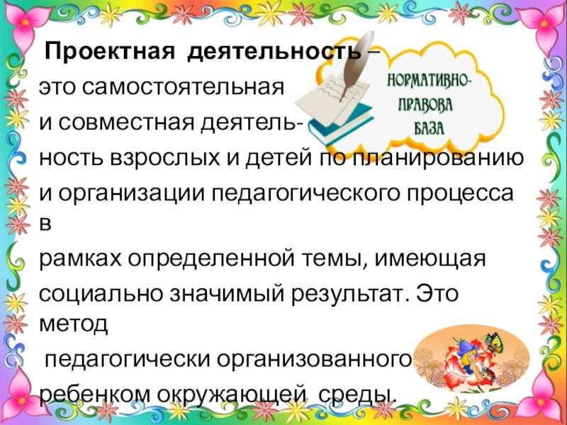 Проектная деятельность является уникальным средством обеспечения сотрудничества детей и взрослых, способом