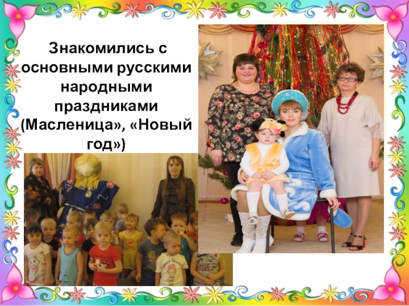 Слайд 16 Знакомились с основными русскими народными праздниками (Масленица», «Новый год»)