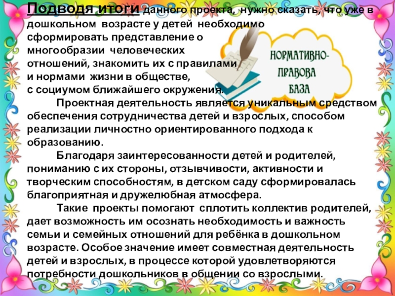 Слайд 18Подводя итоги данного проекта, нужно сказать, что уже в дошкольном возрасте