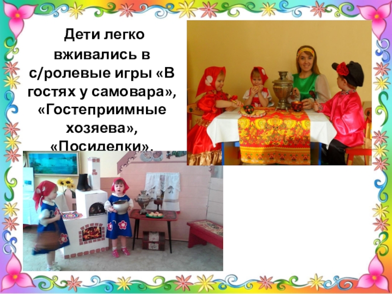 Слайд 15 Дети легко вживались в с/ролевые игры «В гостях у самовара»,