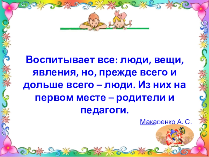 Воспитывает все: люди, вещи, явления, но, прежде всего и дольше
