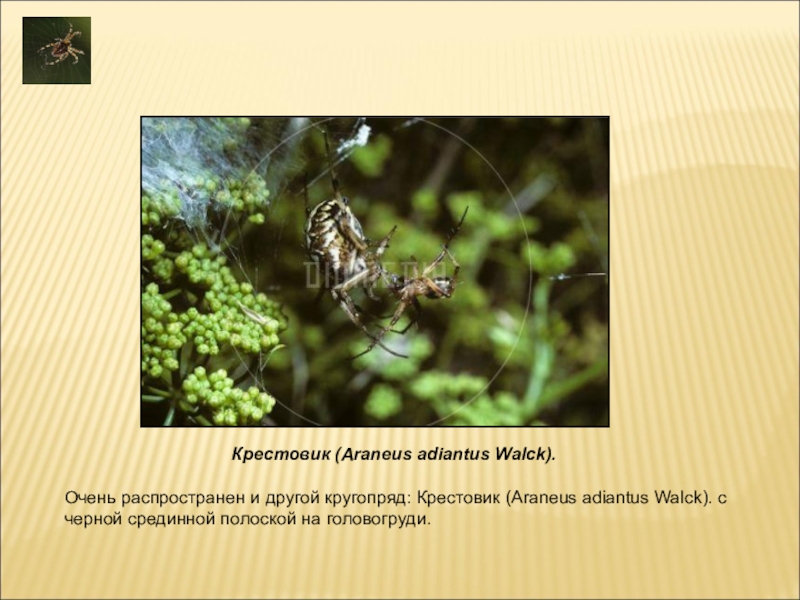 На ней расположены: крючкообразные челюсти, рядом, покрытые чувствительными волосками – ногощупальца и 4 пары ходильных ног.