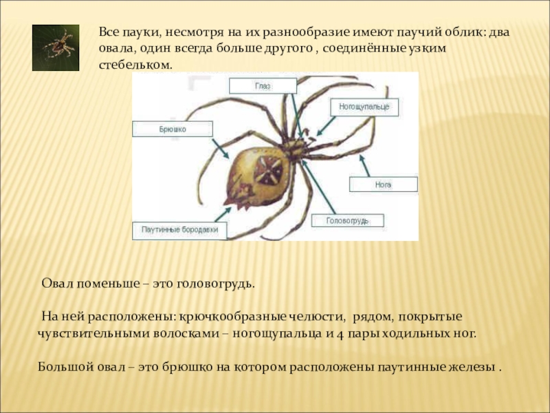 Большой овал – это брюшко на котором расположены паутинные железы .