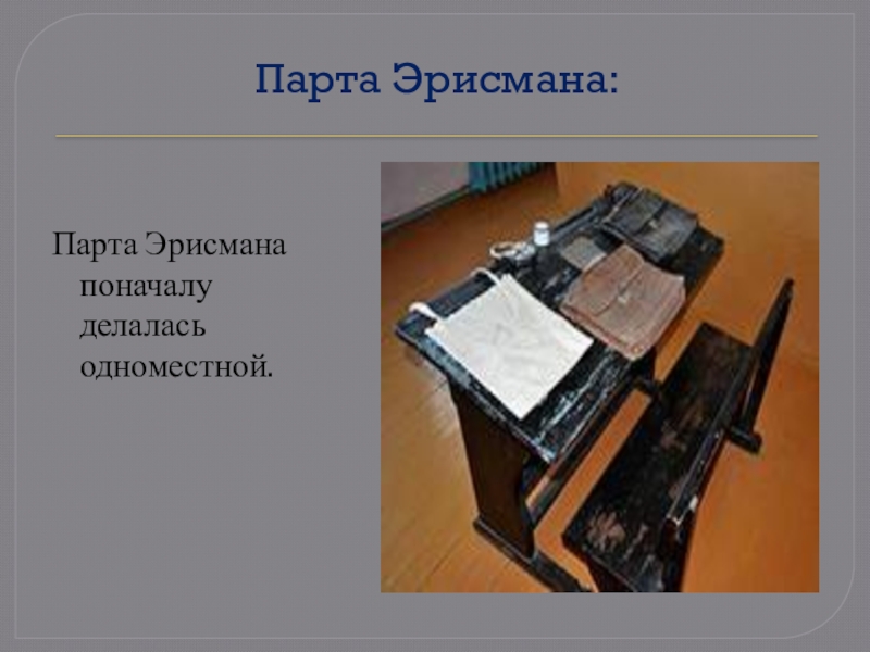 Парта Эрисмана поначалу делалась одноместной.