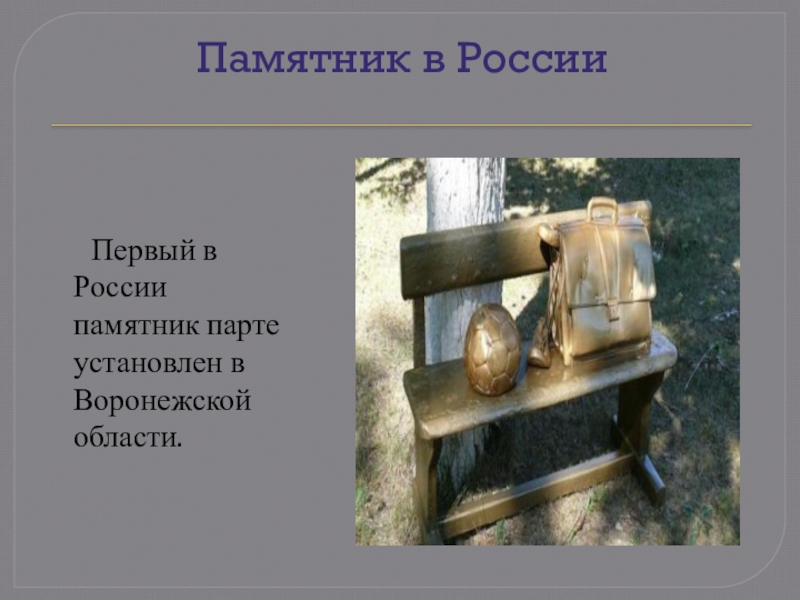 Слайд 27Памятник школьной парте: