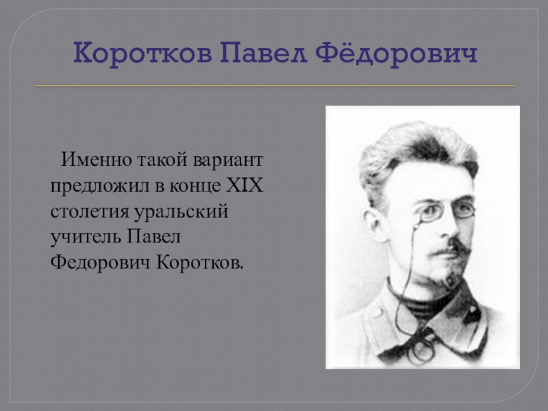 вариант предложил в конце ХIХ столетия уральский учитель Павел Федорович Коротков.