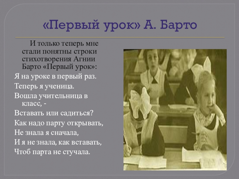 мне стали понятны строки стихотворения Агнии Барто «Первый урок»: