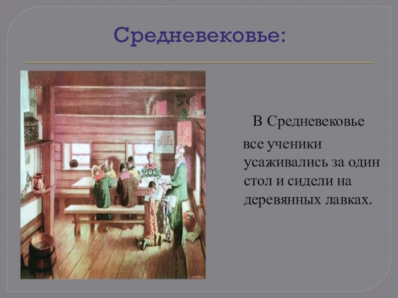 один стол и сидели на деревянных лавках.