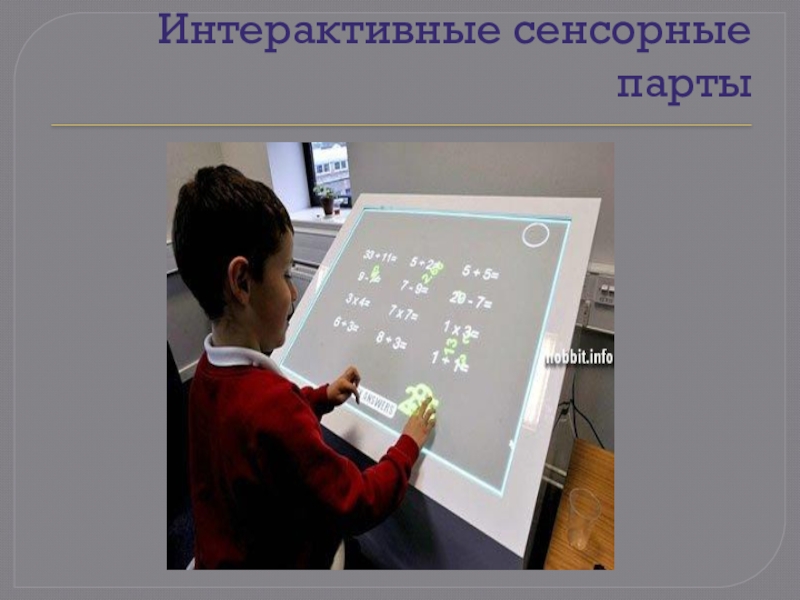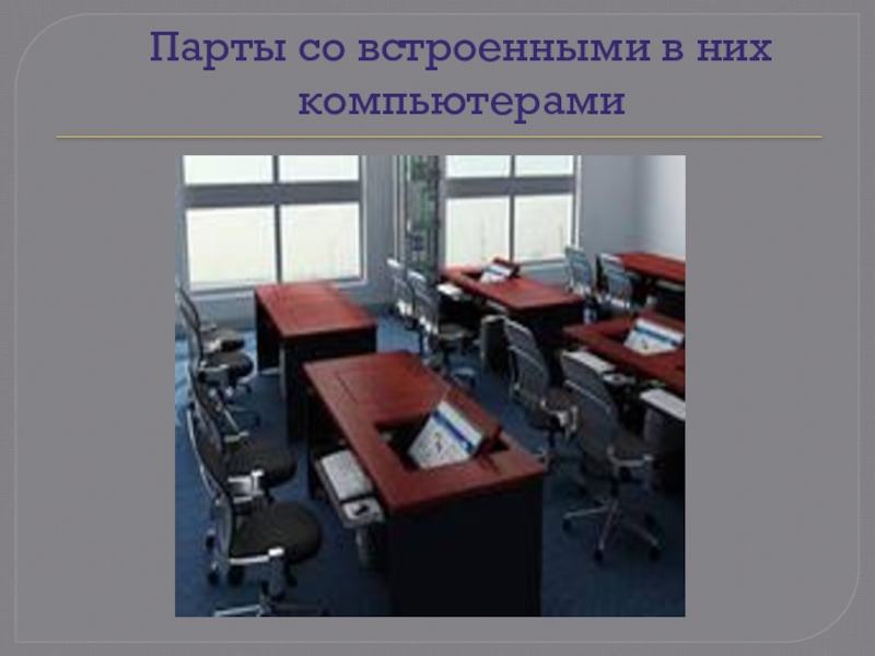 Слайд 25Парты со встроенными в них компьютерами