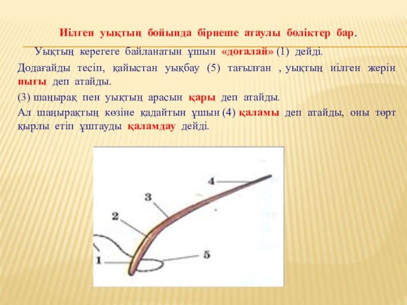 Слайд 7 Иілген уықтың бойында бірнеше атаулы бөліктер бар.