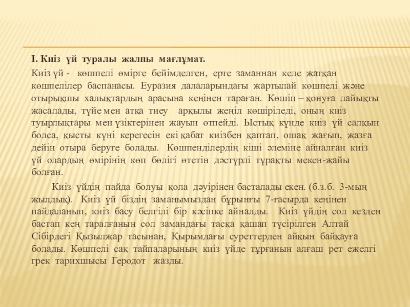 Слайд 3І. Киіз үй туралы жалпы мағлұмат.