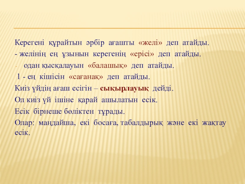 Слайд 9Керегені құрайтын әрбір ағашты «желі» деп атайды.