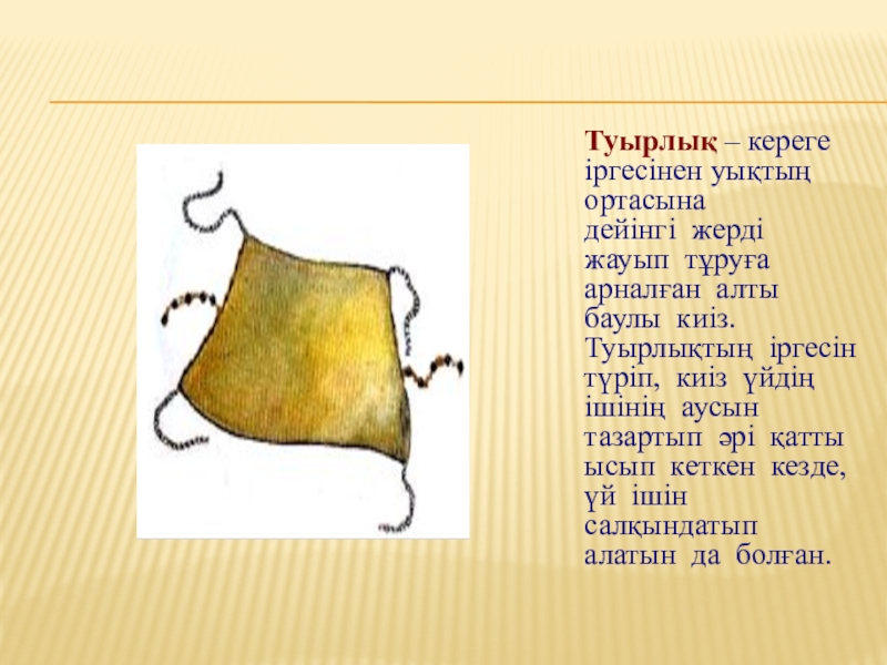 Слайд 13Туырлық – кереге іргесінен уықтың ортасына