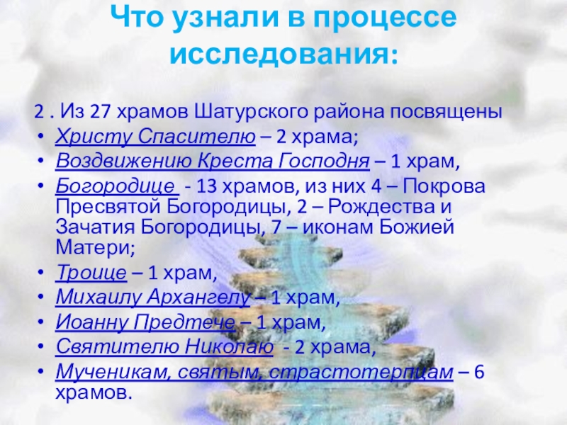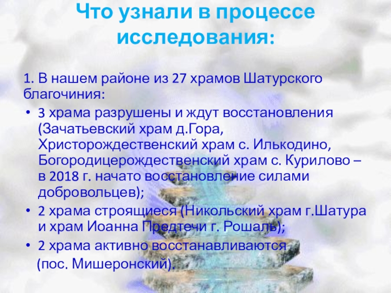 Слайд 19По цвету большинство храмов в Шатурском районе – с золотыми куполами