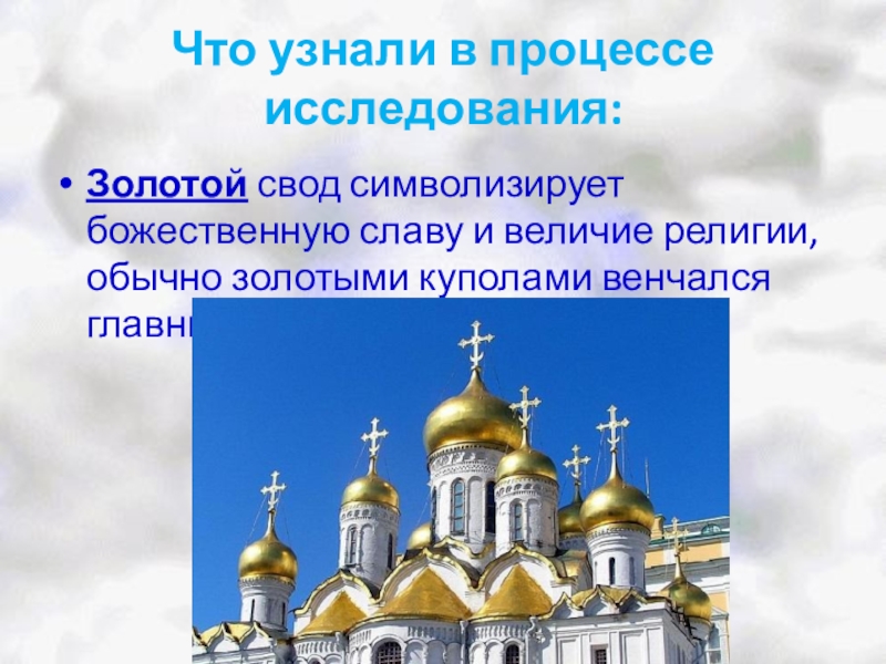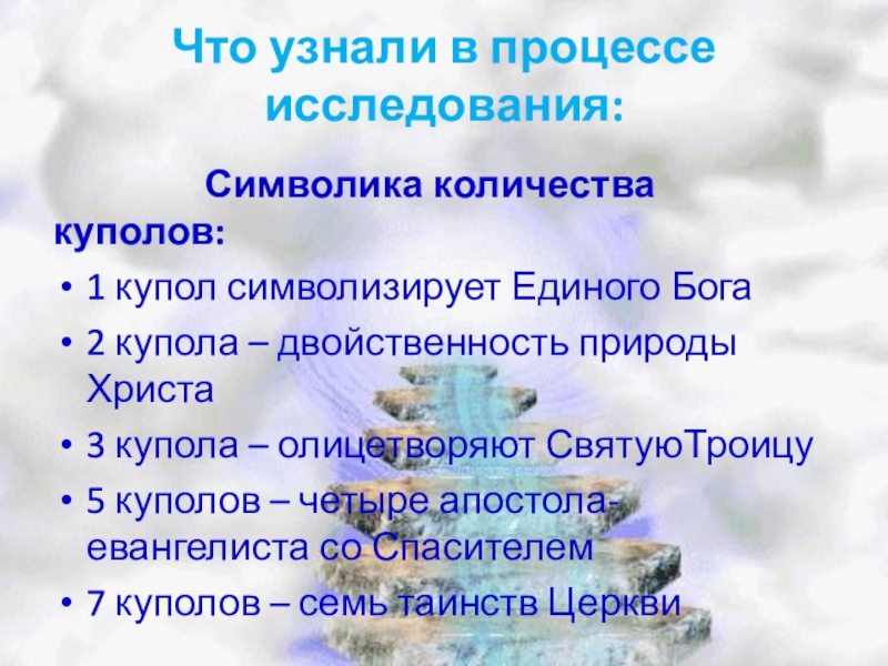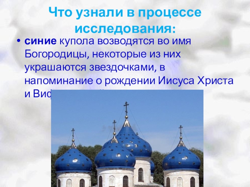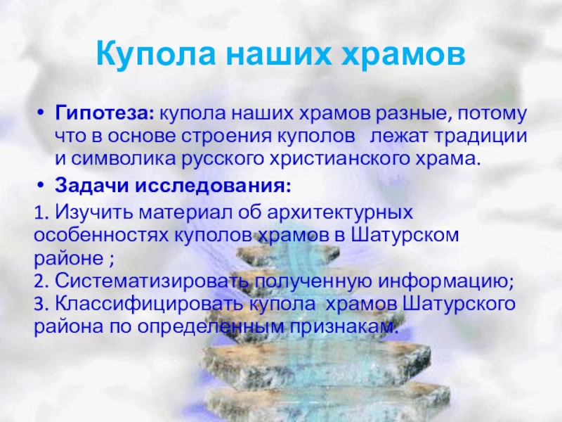 Изучение подобранных материалов о куполах различных православных храмов России и Шатурского района.